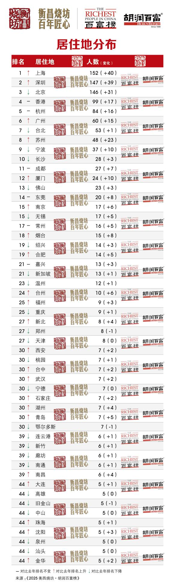 此次榜单中,新面孔多达376位,是去年的7倍。新人之首是老铺黄金的徐高明、徐东波父子,以695亿元财富跻身前100;智能影像设备企业影石的创始人刘靖康与其妻子潘瑶也以385亿元财富首次上榜,位列新人前十。